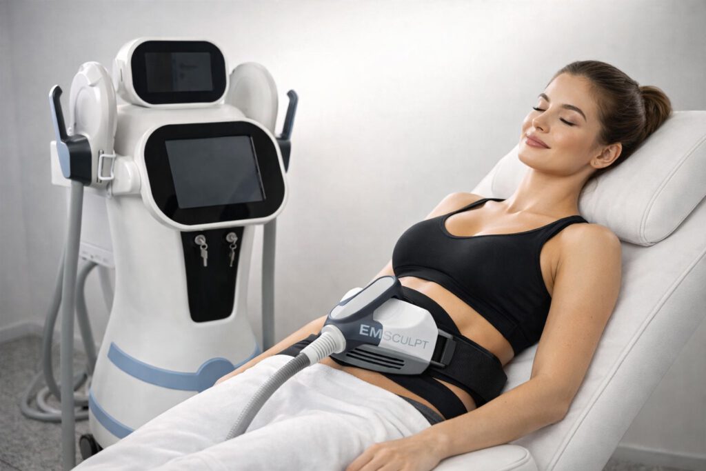 Zu den Vorteilen zählen eine gezielte Muskelaktivierung, eine verbesserte Körperkontur und das Gefühl, sich wieder stärker, straffer und wohler im eigenen Körper zu fühlen – ohne OP, ohne Schmerzen und ohne Ausfallzeit.